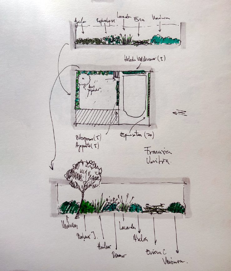 Diseño paisajístico con enfoque arquitectónico.